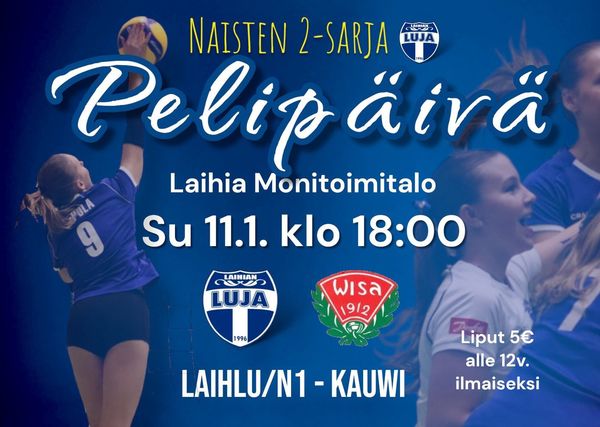 Joulu on juhlittu ja uusi vuosi vastaanotettu – nyt on aika palata lentopallon pariin! Naisten 2-sarjan runkosarjan toinen kierros jatkuu sunnuntaina 11.1. klo 18:00 Laihian Monitoimitalolla, kun LaihLu/N1 kohtaa Kauhavan Wisan (KauWi). 🏐
